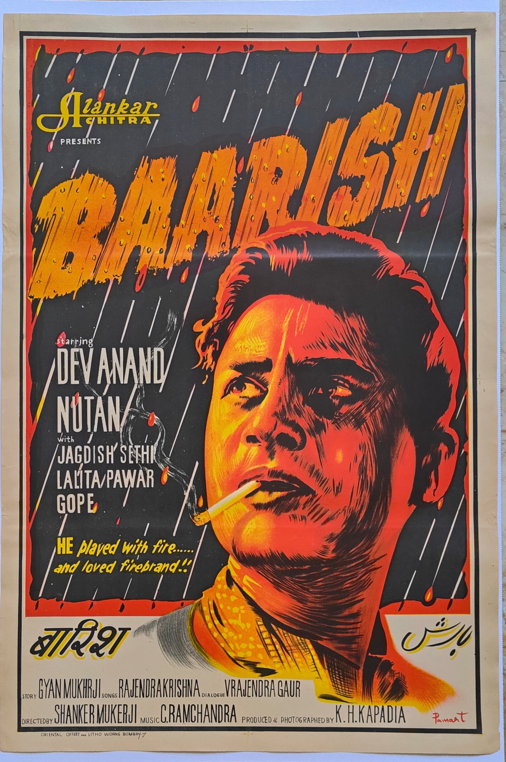 BAARISH :Bollywood original movie poster 1957 Dev Anand,Nutan,Anwar Hussain
