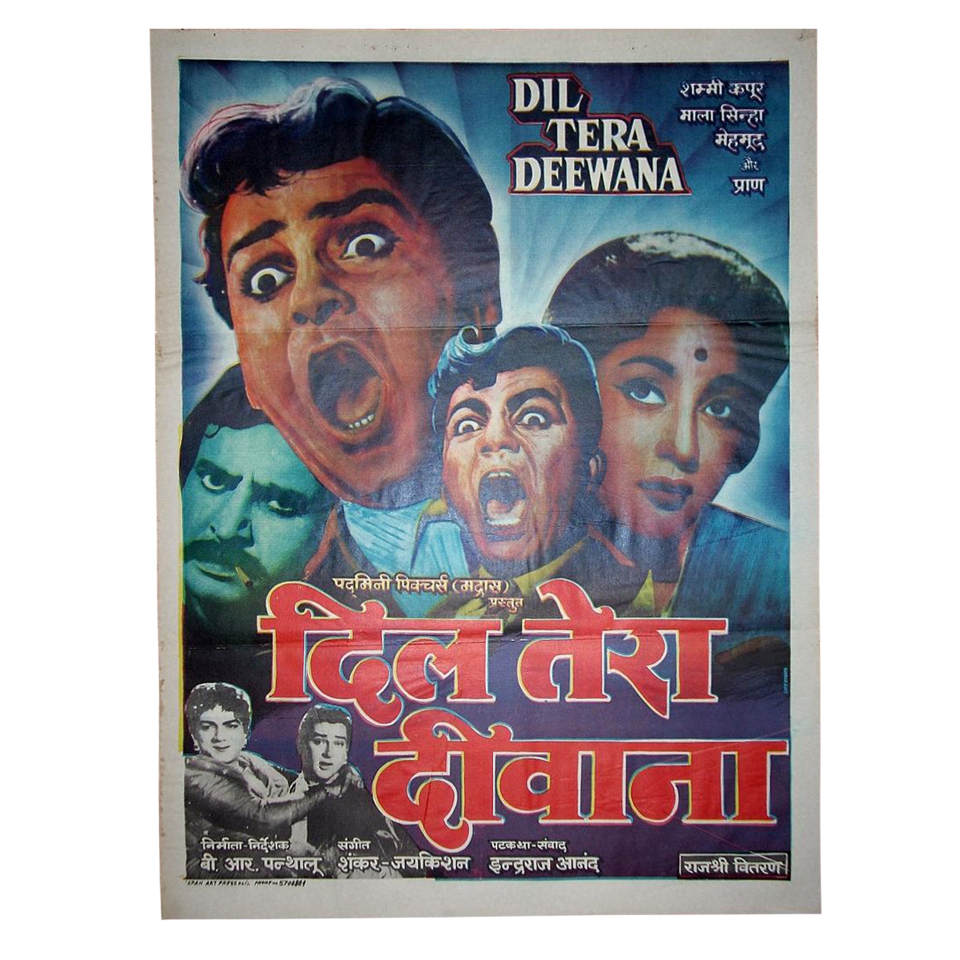 DIL TERA DIWANA : Bollywood original movie poster 1962 Shammi Kapoor,Mala Sinha,Mehmood