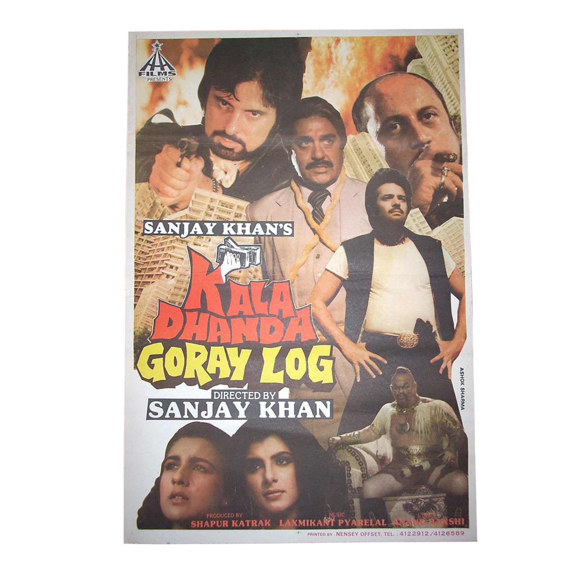 This is a original surviving poster of 1986 bollywood movie KALA DHANDA GORAY LOG starring Sunil Dutt,Sanjay Khan,Anita Raj