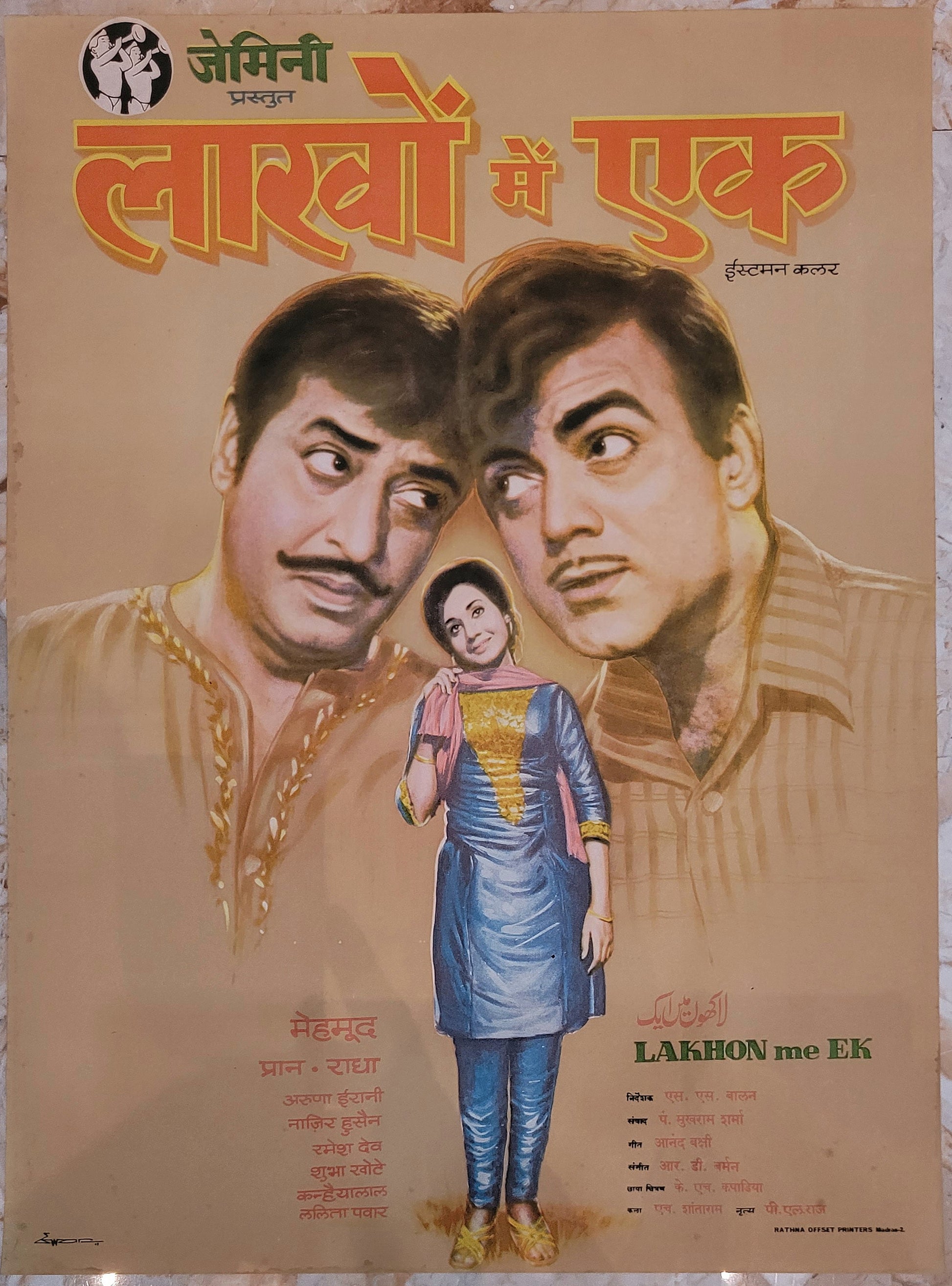 LAKHON ME EK :Bollywood original movie poster 1971 Mehmood,Pran