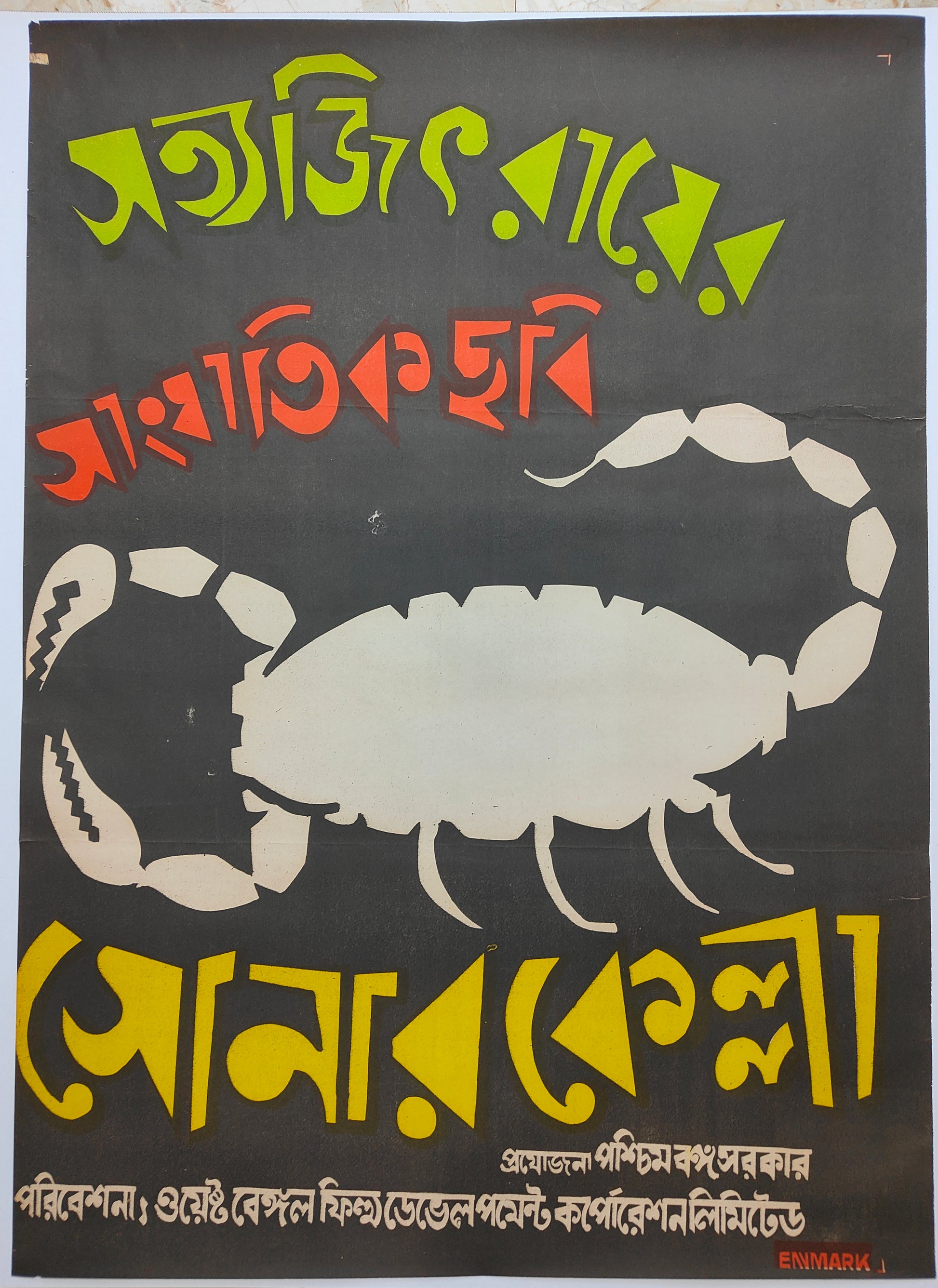 This is a original surviving poster of 1974 Bengali movie SONAR KELLA directed by SATYAJIT RAY starring Soumitra Chatterjee,Santanu Bagchi,Ajoy Banerjee