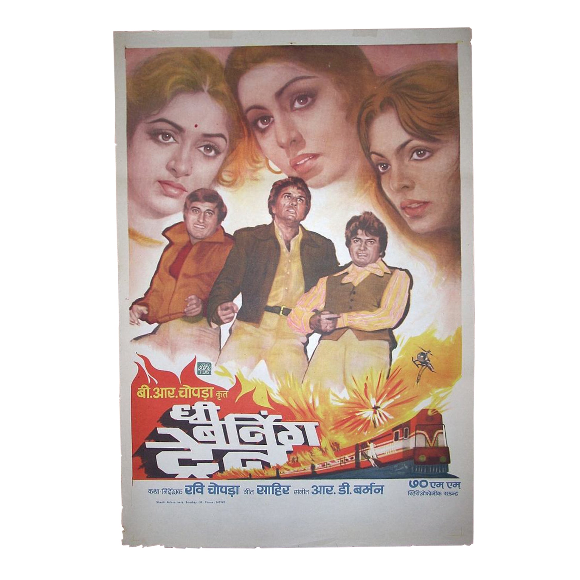 This is a original surviving poster of 1980 bollywood movie THE BURNING TRAIN starring Dharmendra,Vinod Khanna,Jeetendra,Hema Malini,Simi Garewal,Parveen Babi
