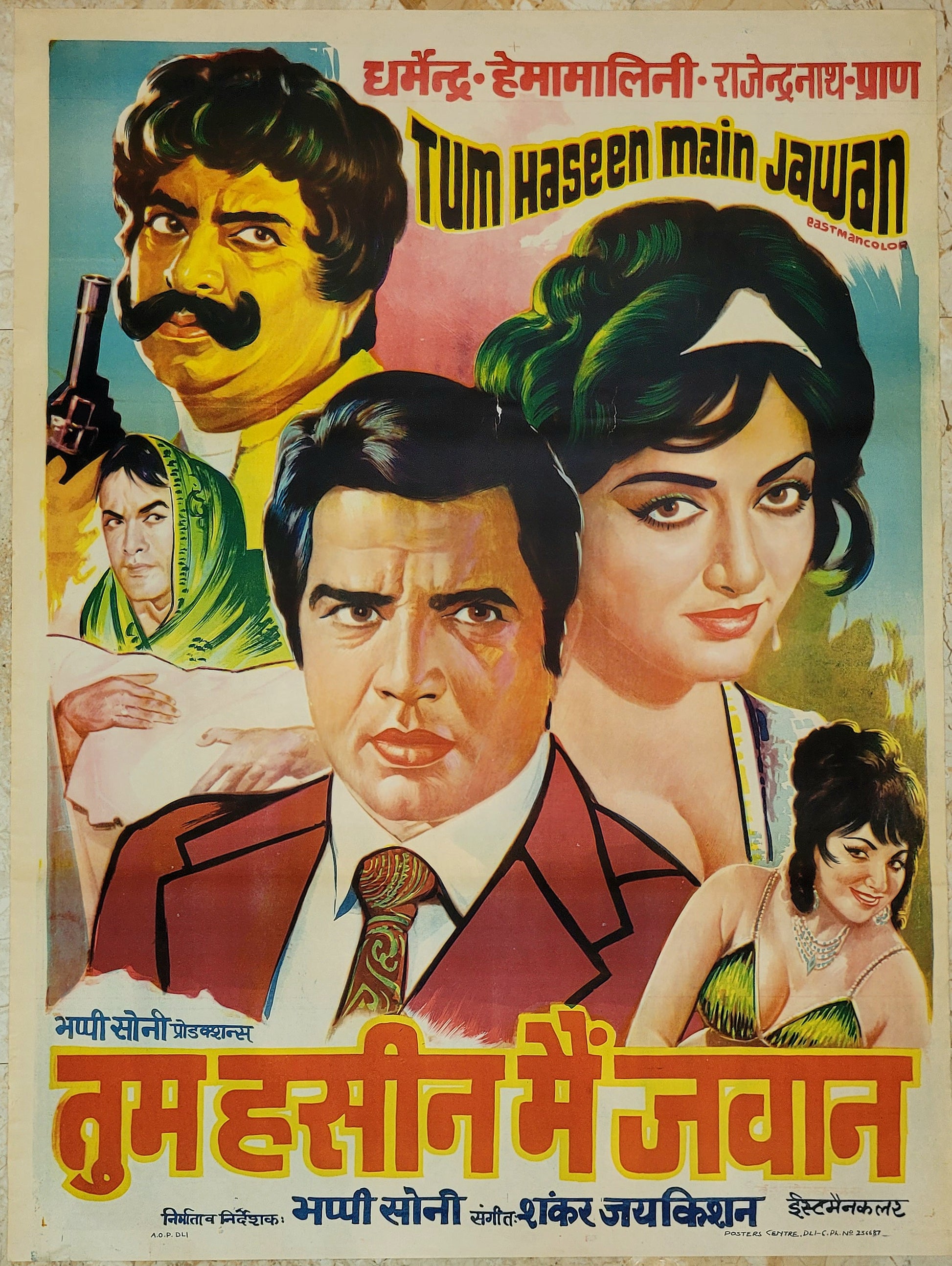 TUM HASEEN MAIN JAWAN :Bollywood original movie poster 1970 Dharmendra,Hema Malini